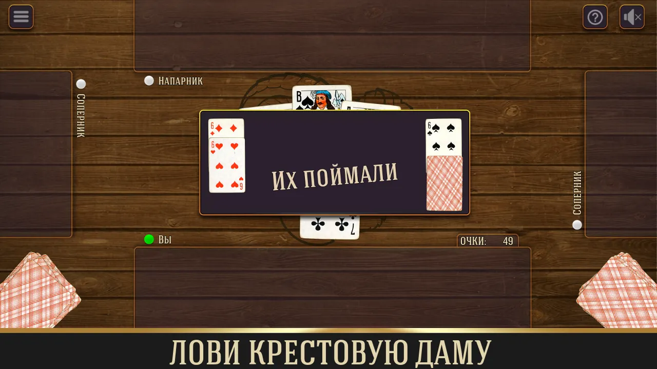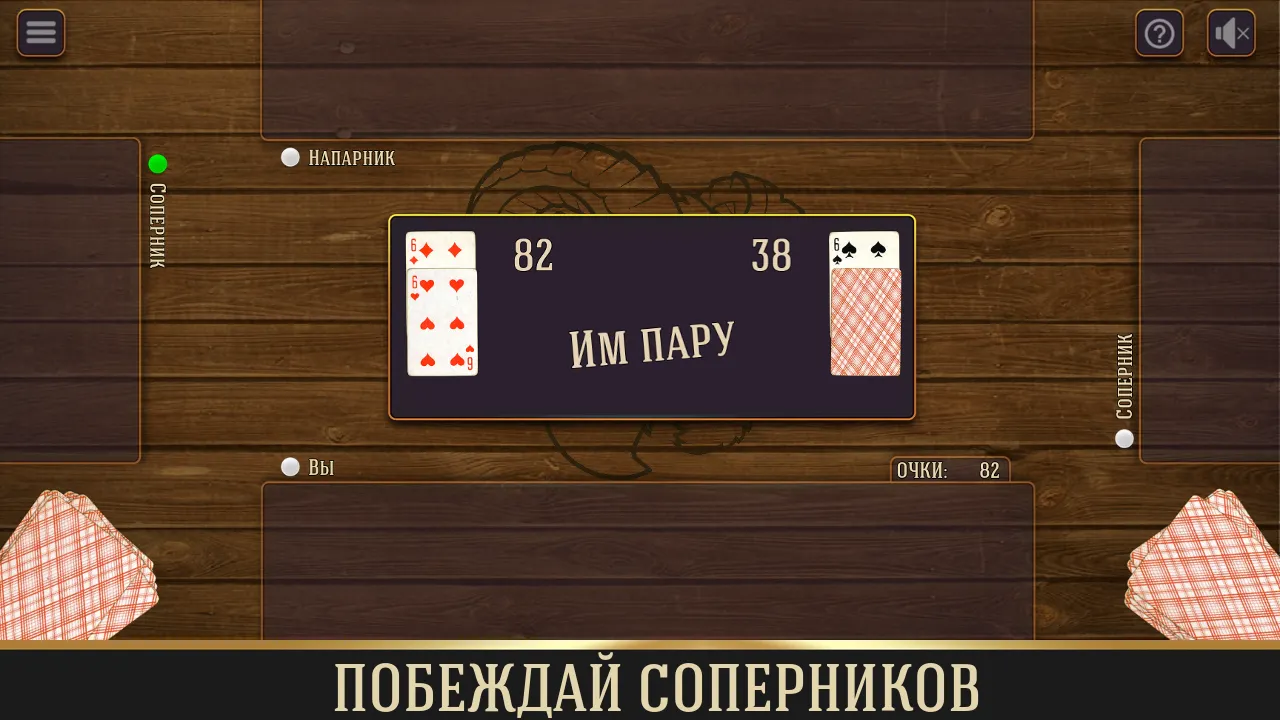 - 🤝 Работай в команде — если у партнёра нет масти, а у тебя есть, можешь подыграть ему, отдав взятку или, наоборот, забрав её.